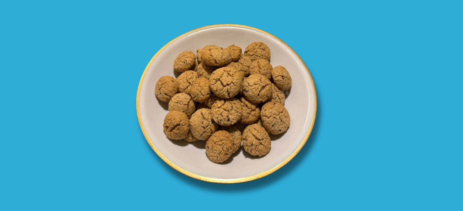 Zum Schluss den Teig portionieren und in ca. 40 kleine Kugeln formen. Die veganen Haferkekse auf ein Backblech geben und ca. 12 Minuten bei 180° Grad Umluft backen.